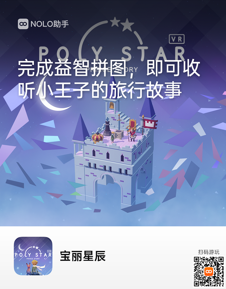 5月27日,《寶麗星辰VR》正式登陸NOLO Sonic。專注休閑游戲的開發(fā)商Newmatic Co., Ltd.二度發(fā)力,讓曾經(jīng)的益智拼圖游戲《寶麗星辰》離開了手游范疇,開啟了更廣袤的VR版本。將小王子與他充滿童趣幻想的小世界用超越次元的狀態(tài),呈現(xiàn)到了每個玩家面前。