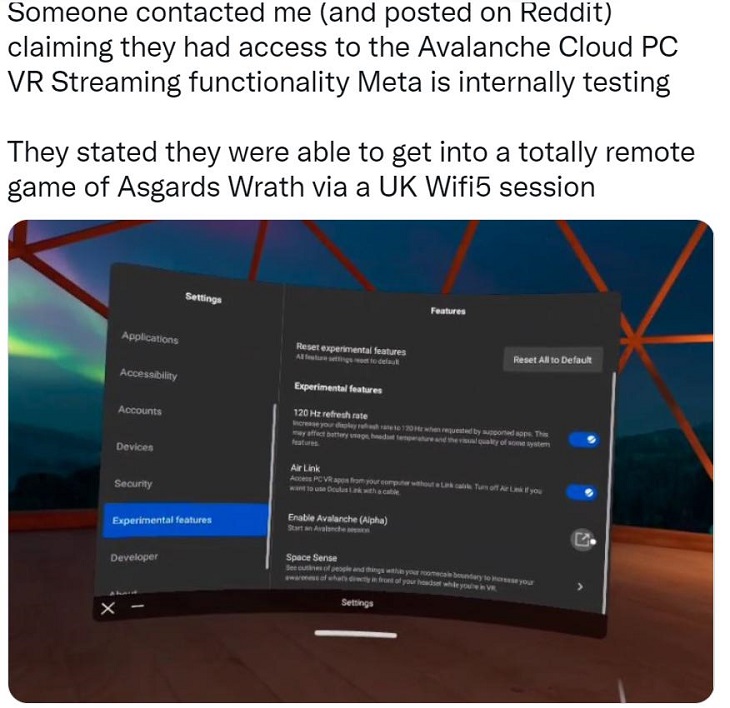 據(jù)稱,2020年底發(fā)布的Quest固件v24中發(fā)現(xiàn)了對(duì)“Avalanche”云PC VR流媒體功能的提及,直至今年4月,數(shù)據(jù)挖掘者和Reddit用戶“Samulia”深入研究了該固件并找到了以下字符串: