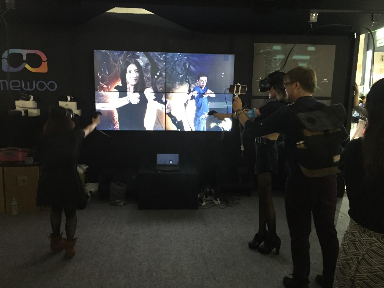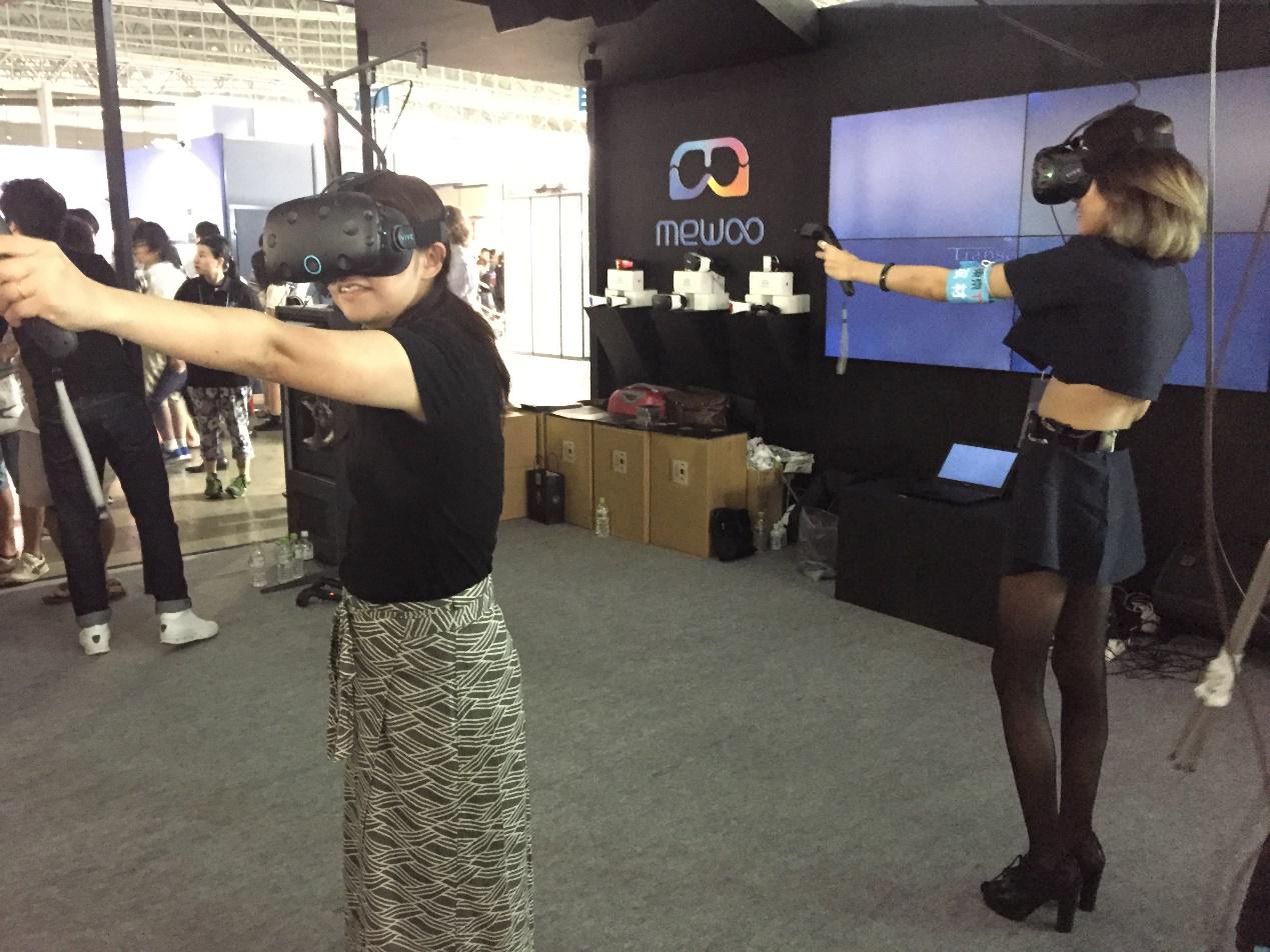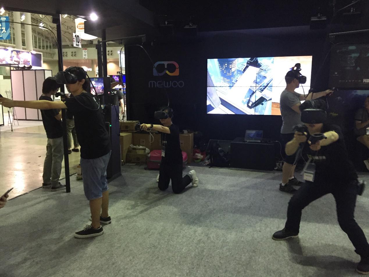 本次幻維世界為玩家?guī)?lái)了專(zhuān)為展會(huì)研制生產(chǎn)的Magic VR時(shí)空穿梭機(jī)以及與此設(shè)備適配的幾十款游戲,據(jù)悉,幻維世界是全場(chǎng)館唯一一家展示VR多人對(duì)戰(zhàn)游戲的公司。同時(shí),公司還展示了自主研制的MeWoo移動(dòng)頭顯和一體機(jī)。展會(huì)期間,玩家們紛紛前來(lái)體驗(yàn),現(xiàn)場(chǎng)熱鬧非凡,排隊(duì)人數(shù)不斷增加。相比一些展位的門(mén)可羅雀,幻維世界展位前可用摩肩接踵、車(chē)水馬龍來(lái)形容,排隊(duì)人數(shù)從第一天的一圈增加到第四天的三圈,既有為了體驗(yàn)五分鐘的射擊游戲連續(xù)兩天過(guò)來(lái)排隊(duì)2.5小時(shí)的姐妹花,也有現(xiàn)場(chǎng)體驗(yàn)最小玩家六歲男童,人小鬼大,氣勢(shì)絲毫不遜大人,引得圍觀群眾連連驚嘆。體驗(yàn)者對(duì)產(chǎn)品和內(nèi)容給予高度評(píng)價(jià),尤其是游戲的真實(shí)感覺(jué)和畫(huà)面質(zhì)量是吸引大家愿意排隊(duì)等候的關(guān)鍵。與以往的電腦游戲不同的是,VR游戲是可以讓玩家走出去、站起來(lái)、運(yùn)動(dòng)一下的有氧健康游戲?,F(xiàn)場(chǎng)問(wèn)詢(xún)顯示,大部分體驗(yàn)者愿意付費(fèi)到游戲廳體驗(yàn)產(chǎn)品,單人出價(jià)在200日幣到800日幣之間,折合人民幣在十塊到四十塊之間。