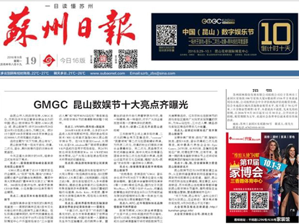 GMGC 昆山數(shù)娛節(jié)官方宣傳已刊登在蘇州日報(bào)、昆山日報(bào)、姑蘇晚報(bào)等報(bào)媒頭版報(bào)眼位,頗有數(shù)娛節(jié)“點(diǎn)睛”之意。另許多傳統(tǒng)媒體也采取了大版面詳盡報(bào)道了GMGC昆山數(shù)娛節(jié)十大亮點(diǎn),并提煉出昆山數(shù)娛節(jié)參會(huì)看點(diǎn)。另姑蘇晚報(bào)今日也刊出昆山數(shù)娛節(jié)“我就是我 忠于自我”GMGC Live Show音樂會(huì)的倒計(jì)時(shí)9天廣告海報(bào),也將對“天下為娛,昆山有戲”的大會(huì)主題進(jìn)一步詮釋,為喜歡二次元、古風(fēng)、搖滾的音樂粉絲朋友“通風(fēng)報(bào)信”。