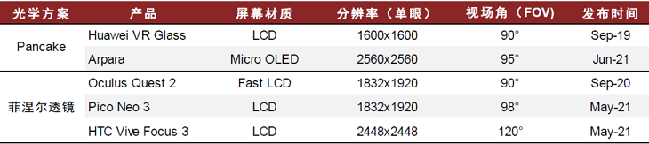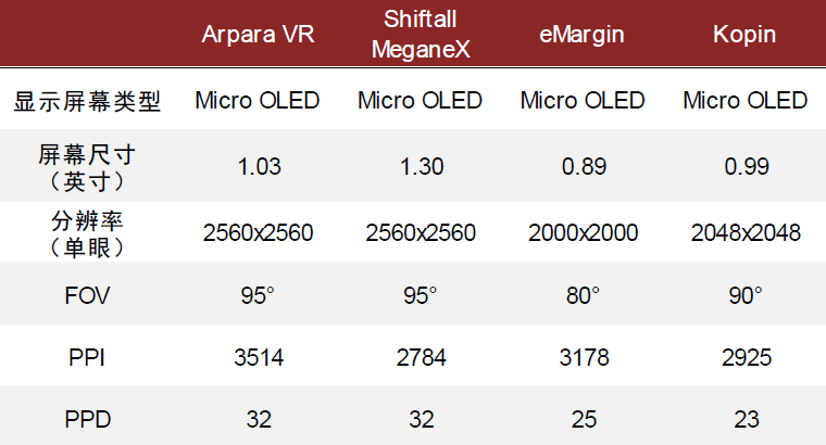 圖表23:現(xiàn)有采用Micro OLED方案的VR設(shè)備參數(shù)對(duì)比