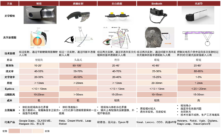 圖表35:AR光學(xué)成像方案總結(jié)一覽