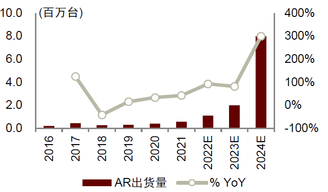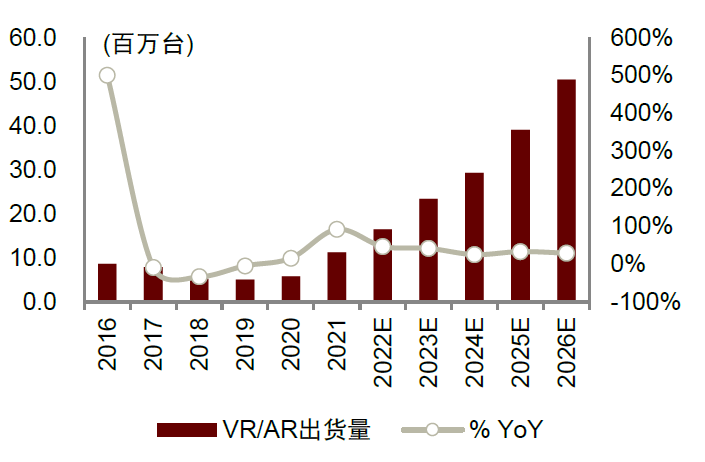 圖表3:全球VR/AR硬件設(shè)備出貨量