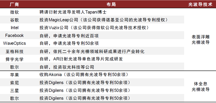 圖表45:國(guó)內(nèi)外大廠在衍射光波導(dǎo)設(shè)計(jì)領(lǐng)域積極布局