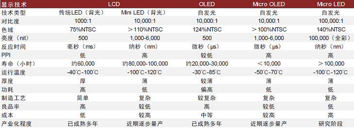 顯示:顯示技術(shù)日漸成熟,Micro OLED成為終端技術(shù)首選