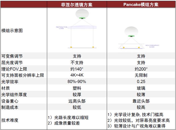 圖表9:菲涅爾透鏡和Pancake方案的對(duì)比