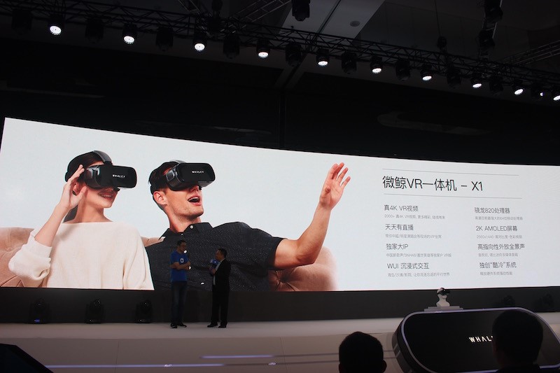 2016年9月20日,微鯨VR在上海卓美亞喜馬拉雅酒店舉行新品發(fā)布會。微鯨科技CEO李懷宇回顧了半年以來微鯨VR取得的發(fā)展成果,并向外界正式發(fā)布微鯨第一款基于驍龍820平臺+2K AMOLED配置的VR一體機微鯨X1。