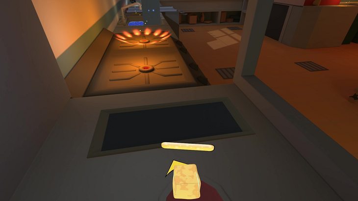 新手引導部分,你會發(fā)現(xiàn)玩法其實并不復雜。手柄B鍵負責正常前進,扳機鍵完成基礎跳躍,側握鍵則用來幫助黃油跳上高臺。轉動手柄,就可以更改移動方向。蓄力時垂直向上拉動手柄,并與高臺保持一定距離,就可以通過變換角度與位置,跳到指定地點,進入下一關。