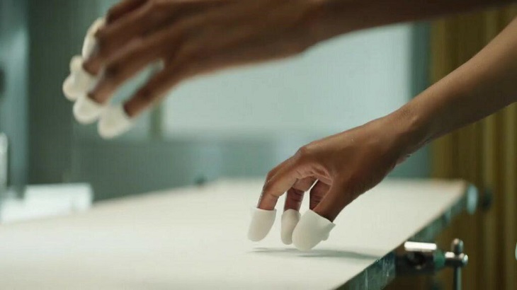 另外該視頻還展示了指尖輸入設備,盡管這可能只是一個營銷概念,Meta談及了兩種截然不同的未來輸入設備“觸覺手套”(Haptic Gloves)和“肌電腕帶”(EMG Wristbands),其中觸覺手套的優(yōu)點是可以提供力反饋,賦予了用戶真實拿著物體的感覺;而腕式設備的優(yōu)點則是使用戶的雙手可以不受阻礙處理現實生活中的物體。