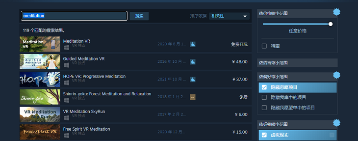 說到VR中熱門的應(yīng)用你能想到哪幾類?游戲、視頻、健身?除了這些之外,VR開發(fā)者們還熱愛一個領(lǐng)域——冥想。在Steam平臺上有100余個冥想內(nèi)容,發(fā)布時間從2016年至2022年分布均勻。