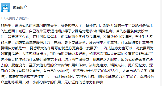 還有一些過于真實的用戶反饋:“冥想前期就是增壓……別的作用只能說很輕微……我奔著神通去的,屁也沒有……”