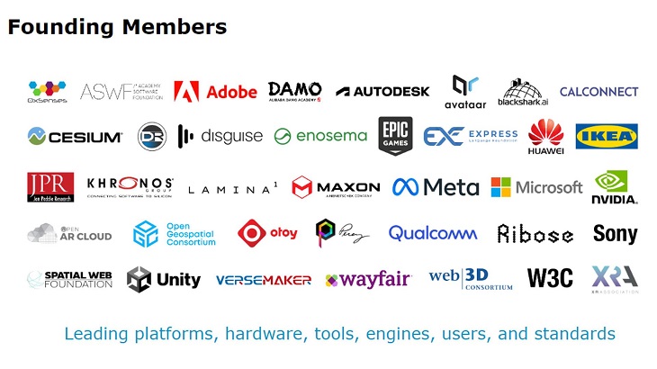 該元宇宙標(biāo)準(zhǔn)論壇由平臺(tái)所有者、硬件公司、引擎/工具創(chuàng)造者和用戶共同發(fā)起,參與者包括Meta、索尼、高通、微軟、英偉達(dá)、Adobe、Autodesk、Epic Games、Unity、OTOY等公司。