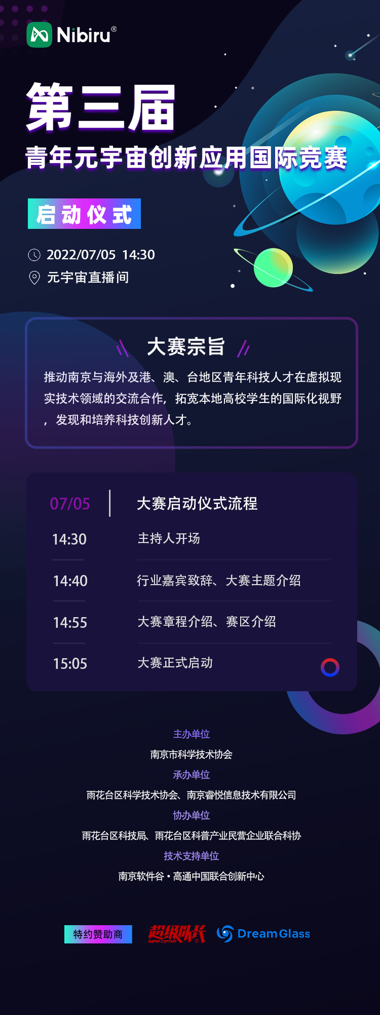 本次大賽啟動儀式將于?7月5日下午舉行,屆時將采取元宇宙直播形式。啟動儀式將應用Nibiru元宇宙掌上一體機,實現(xiàn)低延遲、低畫損三維交互直播。