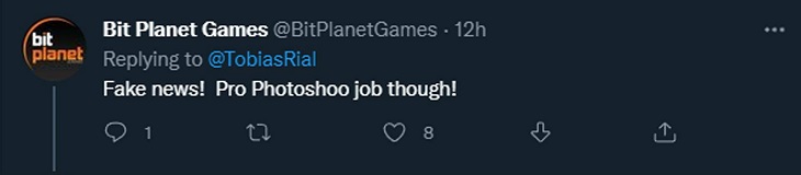 荒謬的是,在另一條推文中, Bit Planet Games也聲稱該圖片“不是真實的,只是紙板、膠帶、以及電線所組成的3D打印模型。”