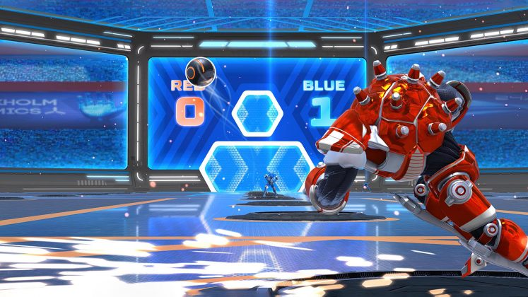 Resolution Games 是VR游戲領(lǐng)域的早期開(kāi)拓者,早在2016年便發(fā)布了「Bait!」,「Wonderglade」(2017),近年來(lái)該廠商專注于多人游戲開(kāi)發(fā),推出了膾炙人口的「Blaston」(2020)和「Demeo」(2021),而其新作「Ultimechs」也秉承了這一理念,這款充滿科幻感的“火箭聯(lián)盟風(fēng)格”游戲支持玩家2v2競(jìng)技,游戲以將“火箭球”射入對(duì)方球門為特色。
