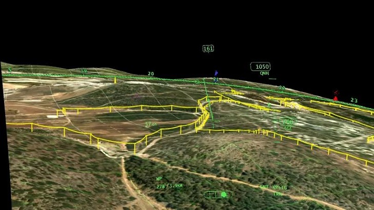 當飛行員導(dǎo)航飛行路線時,頭顯AR疊加層即在虛擬地圖上實時顯示包括從潛在障礙、威脅到關(guān)鍵飛行、任務(wù)信息在內(nèi)的所有內(nèi)容,同時飛行員還能根據(jù)任務(wù)需求和實際狀況進行晝夜飛行、著陸臺分析、碰撞警報、障礙物映射模式切換。