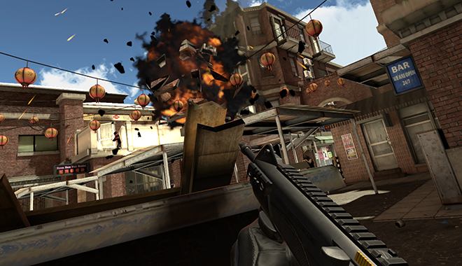 游戲本身沒有設置復雜的故事背景,選擇好槍支,射擊標有“GO”的指示牌就可以開始游戲。玩法也十分簡單,在敵方的火力下利用掩體保護自身,同時扣動板機鍵迅速擊殺全部對手,即可進入下一個場景。注意每個場景切換之間的倒計時,你需要在7分鐘內(nèi)完成所有場景,才算通過一章游戲。