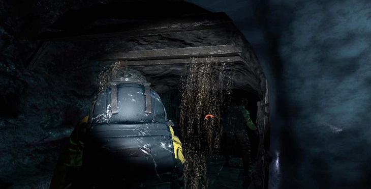 另一方面,游戲在場景設(shè)計(jì)上相比《生化病院》盒子式的設(shè)計(jì)也大有不同,不再困于現(xiàn)實(shí)中的墻壁,在視覺上采用了許多較為開闊的宏大場景,帶來了更深的沉浸感。此外,在多人合作上《摸金校尉VR》的設(shè)計(jì)也更加成熟,相比《生化病院》部分場景由于玩家需要集中在一個較小的區(qū)域中導(dǎo)致容易出現(xiàn)肢體碰撞的情況,《摸金校尉VR》給予了玩家之間較為充裕的空間距離,還加入了讓玩家們在一個空間中分別進(jìn)入不同場景進(jìn)行協(xié)作的新設(shè)計(jì),展現(xiàn)出了沉浸世界大空間VR游戲設(shè)計(jì)理念的進(jìn)步。