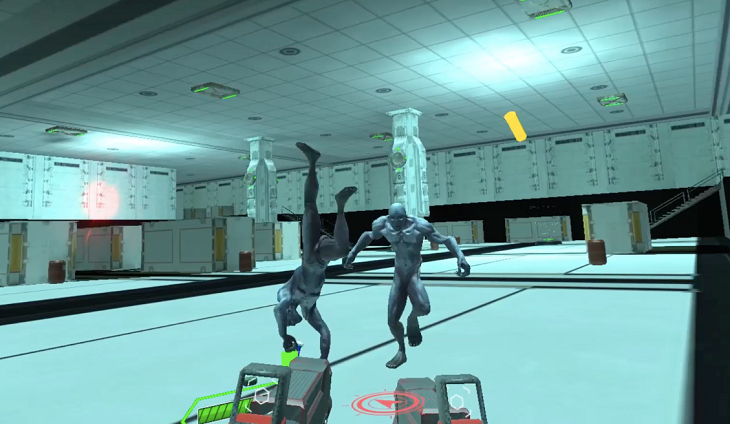 相較于其他游戲,《賽昂槍戰(zhàn)》的操作手法略顯復(fù)雜。左手搖桿控制前后左右的推進(jìn),右手控制旋轉(zhuǎn)角度。雙手配合保證你能夠360度的絲滑前進(jìn)。因?yàn)槭请p槍戰(zhàn)斗,因此兩個(gè)手柄的按鍵都需要使用。A鍵/X鍵用來選擇武器,Y鍵/B鍵用來切換武器,左手側(cè)握鍵跳躍,右手側(cè)握鍵下蹲,扳機(jī)鍵射擊。