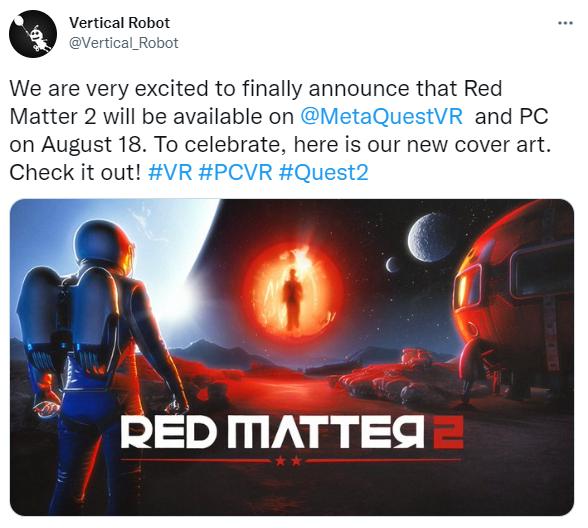 據(jù)UploadVR報道,VR科幻冒險游戲「Red Matter 2」開發(fā)商、西班牙游戲工作室Vertical Robot透露,「Red Matter 2」將于8月18日登陸Meta Quest 2及Steam平臺。