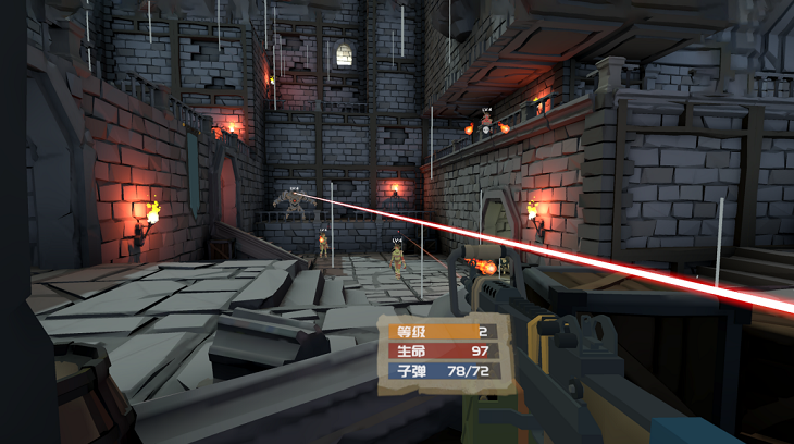 但在基礎(chǔ)玩法之外,《逃出地牢VR》設(shè)置了更多驚喜。比如等級(jí)設(shè)定,每次擊殺怪物都可以獲得經(jīng)驗(yàn),達(dá)到一定經(jīng)驗(yàn)值即可提升等級(jí)。升級(jí)時(shí)玩家角色將恢復(fù)至滿血,同時(shí)也會(huì)提升最大生命值以及各個(gè)武器的攻擊力。好好利用這條規(guī)則,能夠幫助你更順利的走到終點(diǎn)。