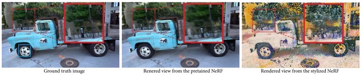 不過,由于受限于NeRF內(nèi)存,研究人員還必須解決另一個(gè)問題,即如何以更接近實(shí)時(shí)的速度渲染更多高清3D圖像,該解決方案是創(chuàng)建一個(gè)視圖循環(huán)渲染,從而使每次迭代都能更一致定位樣式點(diǎn),進(jìn)而重建更詳細(xì)的內(nèi)容圖像。