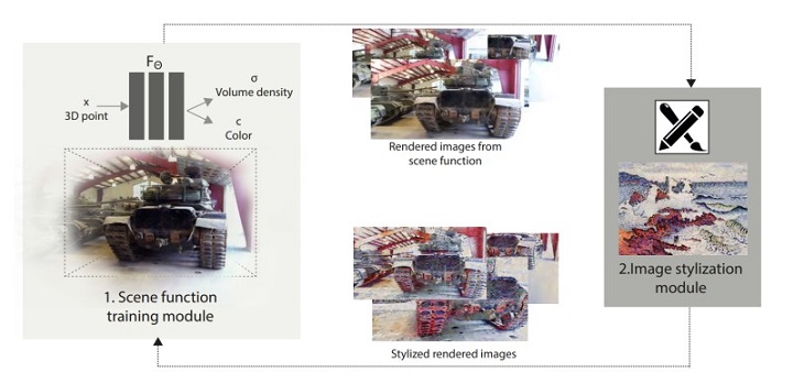 “我們引入了一種新的數(shù)字孿生訓(xùn)練方法,通過交替采用NeRF和程式化優(yōu)化步驟來解決這個(gè)問題,”該團(tuán)隊(duì)說,“此種更具表現(xiàn)力的圖像轉(zhuǎn)換方法使我們能夠充分調(diào)動(dòng)硬件內(nèi)存容量以生成更高分辨率的圖像,實(shí)驗(yàn)表明,基于該方法可生成(包括室內(nèi)、室外和動(dòng)態(tài)場景)在內(nèi)的程式化NeRF,并能合成具有跨視圖一致性的高質(zhì)量新視圖?!?/p>