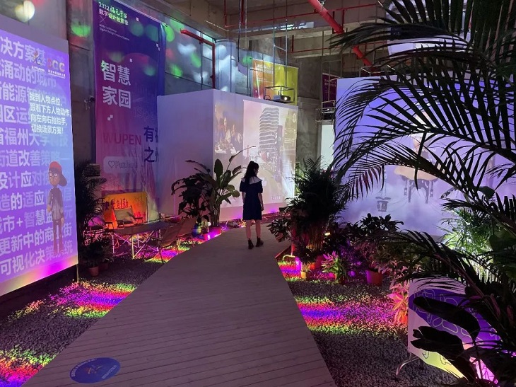 有科技感的不只是現(xiàn)場(chǎng)設(shè)計(jì)。“屏幕上展示的是來自2022數(shù)字中國(guó)創(chuàng)新大賽·數(shù)字城市設(shè)計(jì)賽道的‘百景新銳’,以及2022元宇宙設(shè)計(jì)創(chuàng)新大賽入圍作品,集結(jié)了全國(guó)乃至全球創(chuàng)作者頂尖設(shè)計(jì)作品,展現(xiàn)了數(shù)字城市、元宇宙設(shè)計(jì)的前沿創(chuàng)意思路?!眳侵緩?qiáng)院士工作室ispace部門主任何睿介紹。