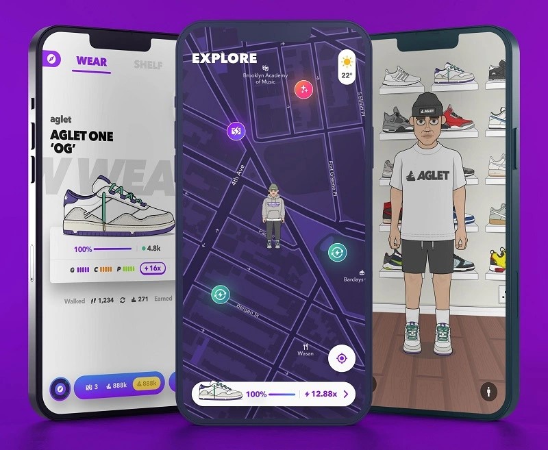 「Aglet」支持玩家購(gòu)買(mǎi)虛擬運(yùn)動(dòng)鞋或以行走方式賺取積分進(jìn)行兌換,「Aglet」玩法類似于「Pokemon Go」,其機(jī)制結(jié)合了虛擬世界和物理現(xiàn)實(shí),可在現(xiàn)實(shí)世界四處走動(dòng)收集稀有虛擬運(yùn)動(dòng)鞋。