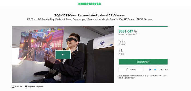 7月7日,TQSKY T1已經(jīng)開啟海外眾籌,上線僅3小時即完成眾籌目標(biāo),截止目前已經(jīng)完成目標(biāo)1641%。