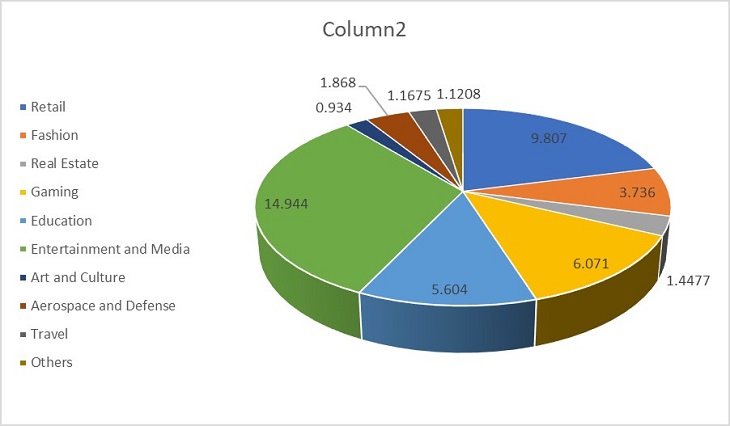 Analytics Insight數(shù)據(jù)顯示,許多行業(yè)已采用了元宇宙技術(shù)以開展業(yè)務(wù),該市場(chǎng)細(xì)分為零售(98.1億美元)、時(shí)尚(37.4億美元)、房地產(chǎn)(14.5億美元)、游戲(61億美元)、媒體和娛樂(149億美元)、教育(56億美元)、航空航天與國(guó)防(19億美元)、藝術(shù)和文化(9億美元)、旅游(12億美元)和其他(11億美元)。