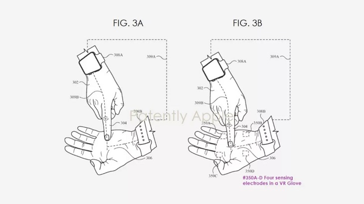 不過,蘋果決定走一條不同的路線,根據最新專利申請,AR/VR頭顯用戶將能通過佩戴在雙手手腕上的“Apple Watch”(尚未正式命名、配有觸摸屏)進行移動光標、打開文檔、菜單選擇等手指輸入和手指手勢操作。