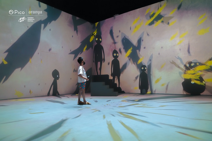 SIF 2022的32部展演作品涵蓋來自威尼斯、戛納、翠貝卡等國際電影節(jié)的VR/AR獲獎佳作,例如《掌聲(Clap)》以新穎的形式讓觀眾與VR中的角色進行互動,串聯(lián)起了虛擬與真實世界;《紅螞蟻(Red Antz)》以互動MV的形式帶領觀眾進入一個Palberta曲風的迷幻異域世界。這些作品一改往年集中的呈現(xiàn)方式,沿阿那亞近一公里海岸線分布散開設立多個活動區(qū)域。不僅有800+平方米的主活動區(qū)、穿插裝置化作品,更有精彩的水下VR體驗以及在孤獨圖書館設立的特殊體驗區(qū)。
