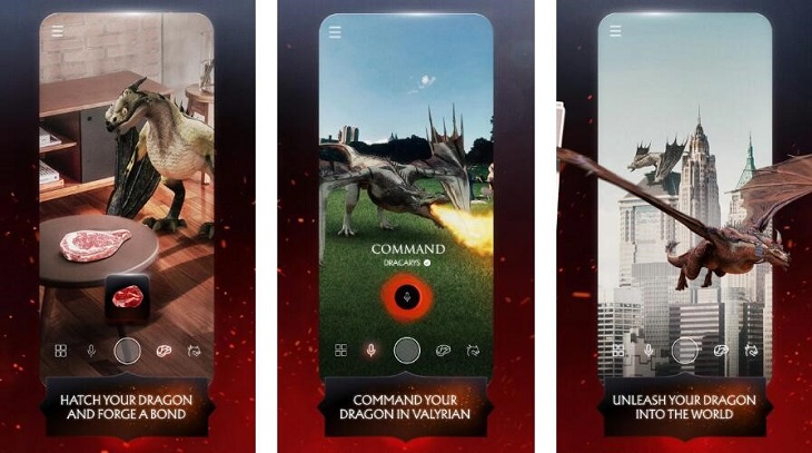 基于「龍之家族:龍焰」,玩家將能指揮維斯特洛最兇猛的巨獸,通過手機(jī)攝像頭,玩家可以將虛擬龍投射至現(xiàn)實世界,并使用一系列語音命令控制龍的動作,這里,玩家將需要學(xué)習(xí)一些瓦雷利安關(guān)鍵詞匯,這是坦格利安家族使用的語言。