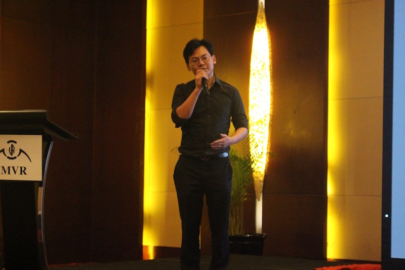 在發(fā)布會現(xiàn)場,創(chuàng)想智控CEO張煒林戴上Oculus 頭盔,結(jié)合IMVR光學(xué)位置追蹤系統(tǒng)進(jìn)行了虛擬現(xiàn)實演示。