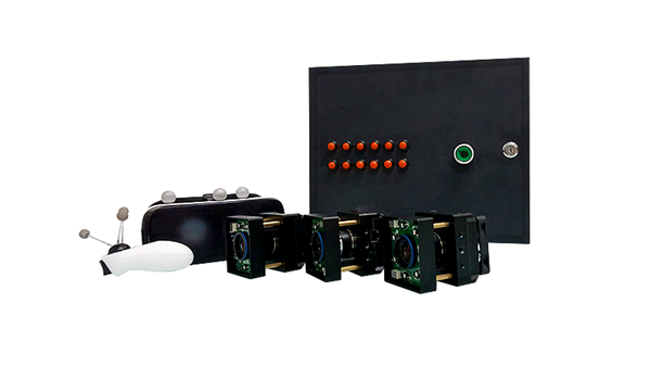 該系統(tǒng)采用的是紅外追蹤方案,整套系統(tǒng)包含:兩個或兩個以上CRNT-VR210智能攝像機(jī)、IMVR Tracker軟件、U3D及UE4引擎SDK、網(wǎng)絡(luò)集控箱、空間標(biāo)定及合作目標(biāo)套件。