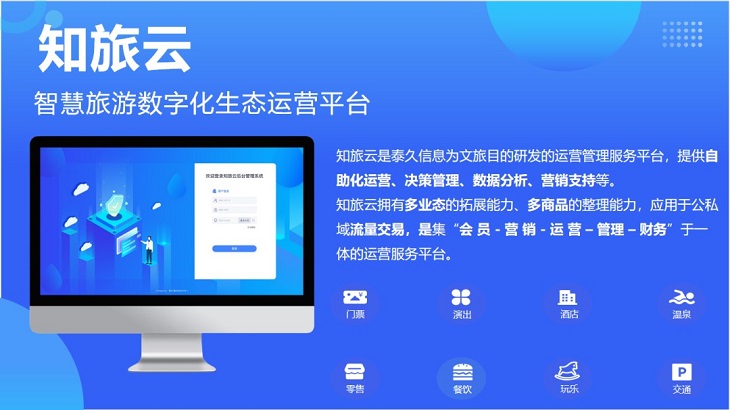 隨著數(shù)字孿生、虛擬現(xiàn)實技術(shù)、通信技術(shù)的相繼成熟,數(shù)字文旅發(fā)展不容小覷。針對文旅行業(yè)數(shù)字化轉(zhuǎn)型的需求,泰久開放了智慧票務(wù)系統(tǒng)“云票務(wù)”及智慧旅游數(shù)字化生態(tài)運營運營服務(wù)平臺“知旅云”的操作體驗。