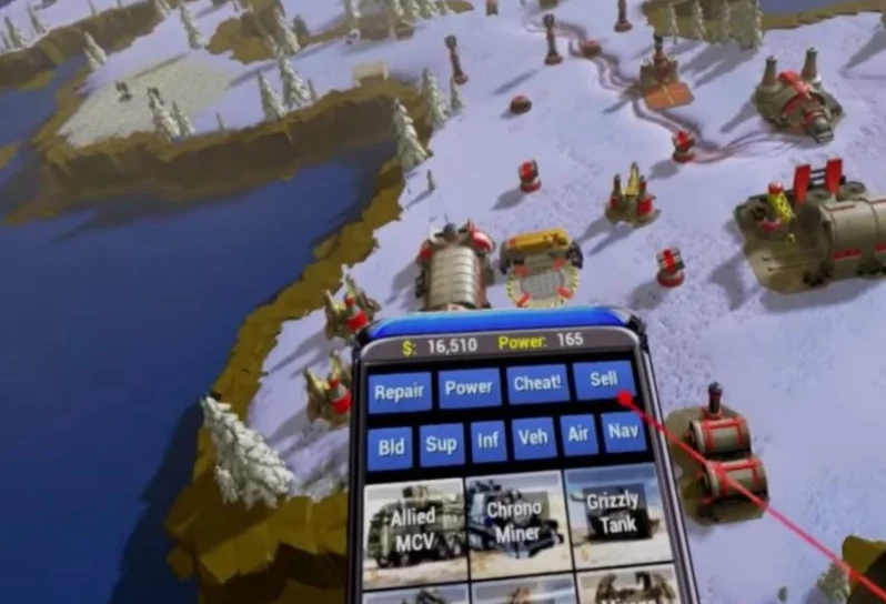 類似的主機大作移植還有《紅色警戒》VR版。2020年10月,名為Aacute dám Horváth的開發(fā)者發(fā)布了《紅色警戒》VR版。延續(xù)了紅警的上帝視角,玩家選擇菜單變成了手持面板,選擇目標區(qū)域放置建筑。