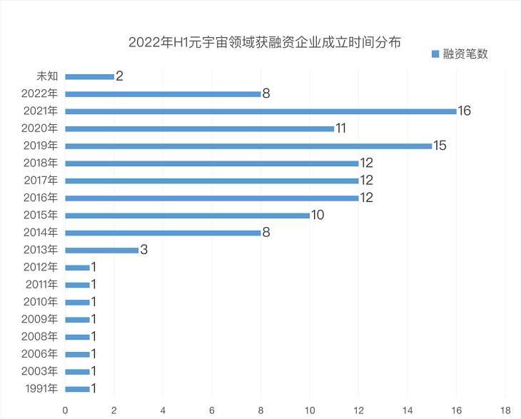 ▲2022年H1元宇宙領域獲融資企業(yè)成立時間分布