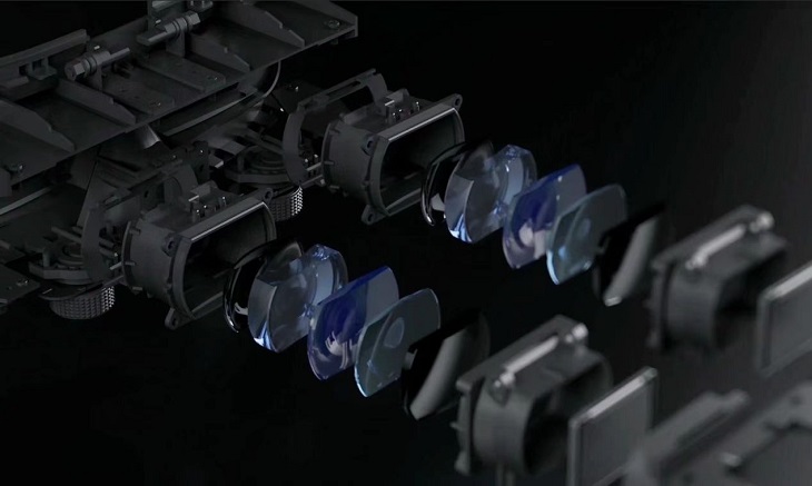 GOOVIS所采用的光學(xué)方案是納德光學(xué)團(tuán)隊(duì)專門研發(fā)的一套基于單反相機(jī)鏡頭的光學(xué)設(shè)計(jì),所采用的是12片玻塑混合非球面多鏡片組,玻璃非球面運(yùn)用到AR/VR類的設(shè)備極少,這不僅僅是考慮到成本,更是因?yàn)檫@是基于高端單反相機(jī)鏡頭設(shè)計(jì)的技術(shù)之上,有較高技術(shù)門檻。這樣就能理解為什么納德團(tuán)隊(duì)的核心人員來自?shī)W林巴斯這樣的世界一流光學(xué)公司?!案呦褓|(zhì)的光學(xué)成像設(shè)計(jì)和制造是極其精密的,不夸張的說就是‘差之毫厘,則謬之千里’,因此GOOVIS的12片單反級(jí)光學(xué)鏡片間相對(duì)位置需要達(dá)到 ‘微米級(jí)’精度,這才能實(shí)現(xiàn)優(yōu)秀畫質(zhì),并最大程度保證光效率?!蹦壳癎OOVIS的光效率是同類產(chǎn)品中最高的,超過80%。