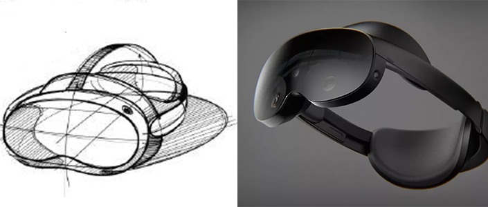 從線稿圖來看,或許是同樣采用了Pancake光學(xué)方案的原因,Pico 4在外觀上與Cambria較為接近,只是多了一根頂部的頭帶,都與滑雪鏡十分相似。