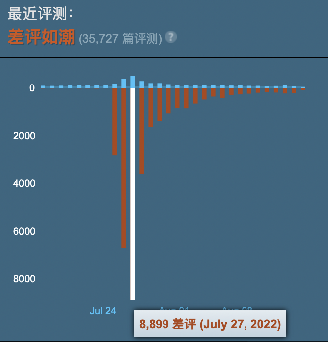 憤怒的玩家在7月27日當(dāng)日又送上了8000+條差評。