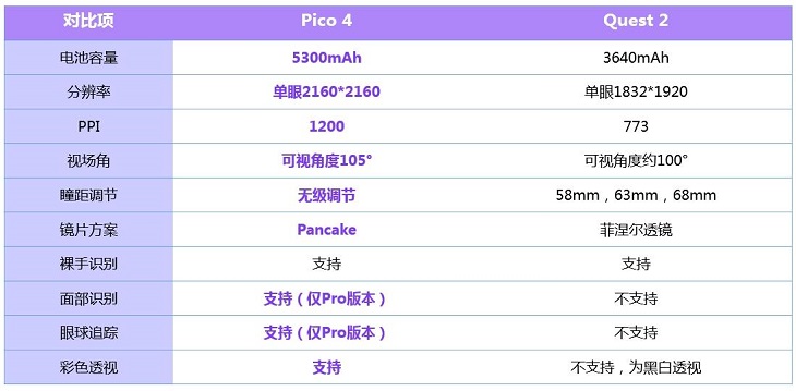 比如,此前Pico 4參數(shù)曝光中,我們可以看到,在光學(xué)方案上,Pico 4采用了Pancake 方案。相比于菲涅爾透鏡等其他方案,Pancake方案最大的特點(diǎn)之一就是能讓頭顯更加輕薄。