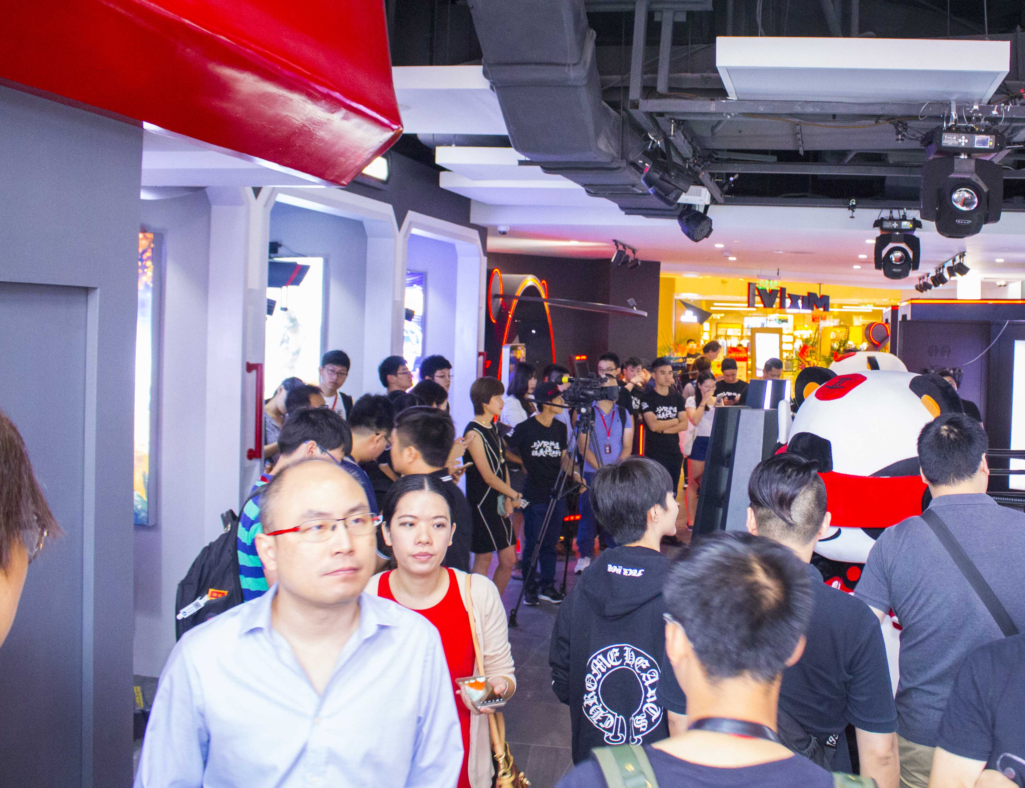 在上海Mix[V]外,超級隊(duì)長的IP形象小凱——一只頭戴VR設(shè)備、極富科技感的熊貓破墻而出,視覺效果極為震撼,引得路人頻頻駐足拍照。如此精心設(shè)計(jì)的造型,彰顯了超級隊(duì)長Mix[V]征服上海市場的壯志雄心,以及戰(zhàn)略布局全國的野望。