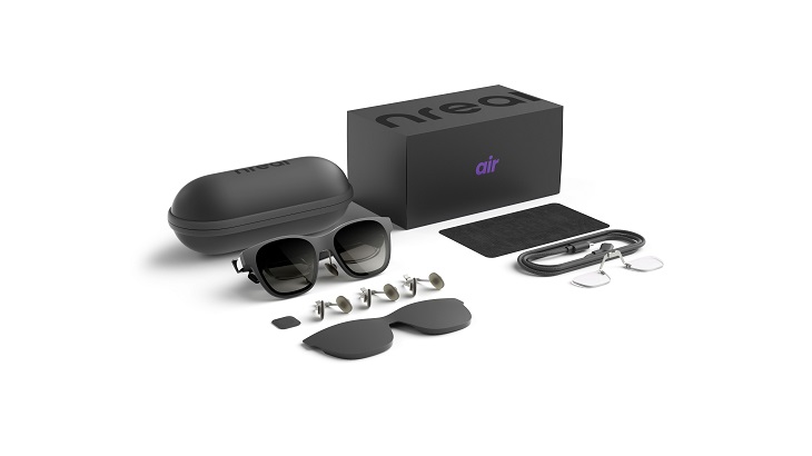 包裝中還包含三個不同型號的鼻托、一個遮光眼鏡罩、一套平光鏡片和一個便攜包。鼻托可以適應不同的鼻梁高度、遮光眼罩可以保證在強光環(huán)境下的觀影體驗、平光眼鏡可以作為配鏡的參考、眼鏡盒大小的便攜包可以輕松裝在通勤包中攜帶。這些配件大大提升了佩戴的舒適感,加強了Nreal Air本身的「方便」屬性。