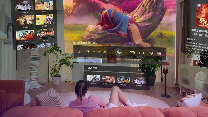 最明顯的感受就是清晰度,幾乎看不到我們會在投影、電視屏幕上看到的「像素點」,整體界面交互也比較流暢,在日常光照、燈照環(huán)境中也能保持較好的顯示效果,這就要歸功于Nreal Air采用的索尼Micro OLED顯示屏。