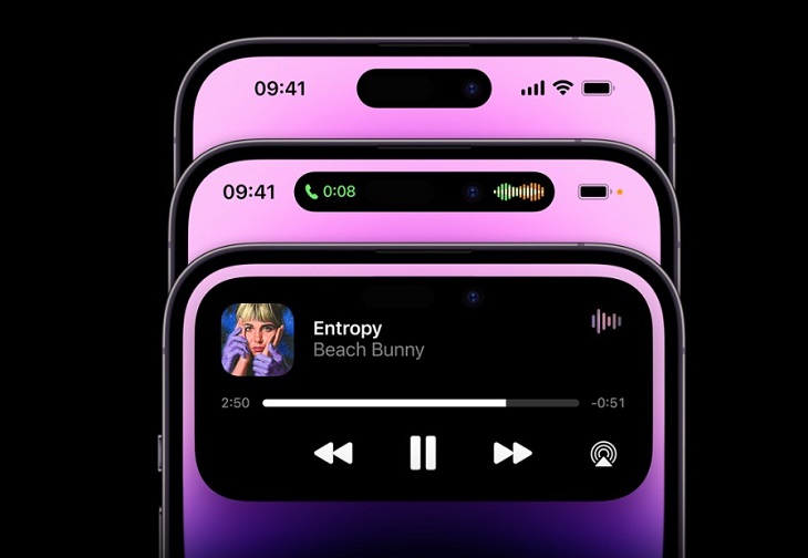 iPhone 14 Pro與iPhone 14 Pro Max最大的變化在于劉海,采用了新排布與挖孔設(shè)計,面積縮小了31%,同時將距離傳感器放到了屏幕下方隱藏起來。蘋果還圍繞著新的劉海設(shè)計了一套名為靈動島的功能,讓劉海能夠融入到通知、提醒和實時活動等手機(jī)畫面中去不再顯得突兀。