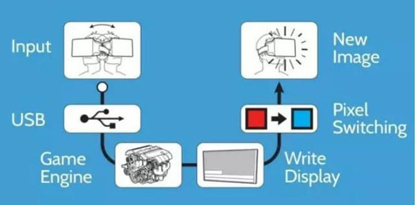 那么延遲響應(yīng)又是什么呢?如果你用VR設(shè)備體驗(yàn)過全景視頻,就會(huì)知道,當(dāng)使用者左右擺頭時(shí),畫面是會(huì)隨著擺動(dòng)角度而產(chǎn)生變化的,這借助了設(shè)備上的陀螺儀。然而畫面的變化并非實(shí)時(shí)發(fā)生的,陀螺儀感受到用戶的位移后將信號(hào)傳輸給CPU,CPU再控制GPU改變畫面信號(hào),最后通過屏幕刷新顯示畫面,整個(gè)過程雖然是毫秒級別,但對于難以欺騙的人腦來說還是會(huì)明顯感到延遲,這種看到的內(nèi)容和大腦反應(yīng)不同的情況會(huì)讓使用者產(chǎn)生眩暈感,頭暈和惡心便在所難免。想要順利騙過人類的大腦,業(yè)內(nèi)給出了一個(gè)十分明確的數(shù)值,20ms,只有當(dāng)響應(yīng)時(shí)間低于這個(gè)數(shù)字,才有希望順利騙過人腦,避免眩暈的發(fā)生。