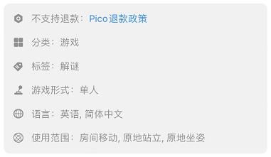 除此之外,許多VR內(nèi)容更傾向于類似電影的一次性體驗,如果將這些產(chǎn)品與具有重復體驗價值(比如多人聯(lián)機玩法)的游戲裹挾在一起,明顯有些不公平。因此,PICO為不同游戲提供有選擇性的開放退款,可能就是考慮到了這些體量不大的VR內(nèi)容。