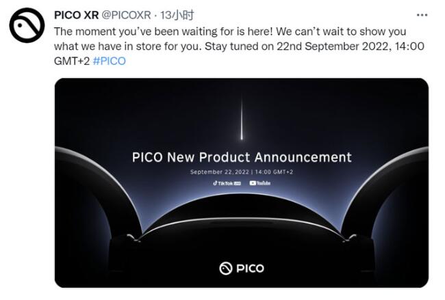 近日,PICO官方推特宣布,將于2022年9月22日東二區(qū)時間14點(diǎn)舉行海外新品發(fā)布會,屆時,已炒得沸沸揚(yáng)揚(yáng)的PICO 4 VR一體機(jī)將會亮相。